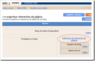 1) No painel de controle do blog, clique em "Layout" e depois em "Adicionar um elemento de página".
